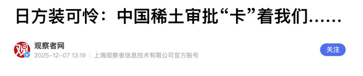在日本还沉浸在“光刻胶禁令”带来的虚幻快感时,12月7日,日本主流大报《读卖新闻》突然发出报道,日本企业近期在向中国申请稀土及相关关键矿物的出口手续时,遭遇了极其罕见的延迟。虽然中国官方没有任何大张旗鼓的制裁公告,但那种令日本商界窒息的压迫感已经迎面而来。