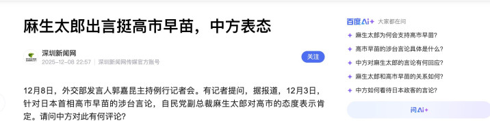 中方的态度很明确,这不仅是高市早苗一个人的疯狂,而是其背后以麻生为代表的整个日本右翼势力在错判形势。他们把挑衅中国当作是在国内收割民意,转移丑闻视线的廉价工具,以为有了美国的“核保护伞”就可以在东亚为所欲为。
